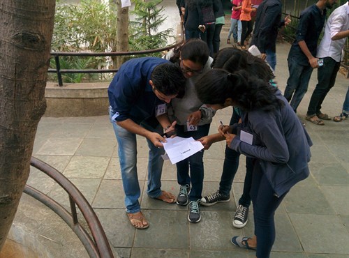 The event took place at the Department of Biotechnology, Sinhgad College of Engineering. In each of the three rounds, clues were given to the participants, based on which they had to take photographs. The clues were of objects and places all over the STES Vadgaon campus. The participants later had to submit their photographs to the organizers. The photographs were scored based on their accuracy and the amount of time the participating team took to solve all the clues. The teams which scored the most points qualified for the next round.