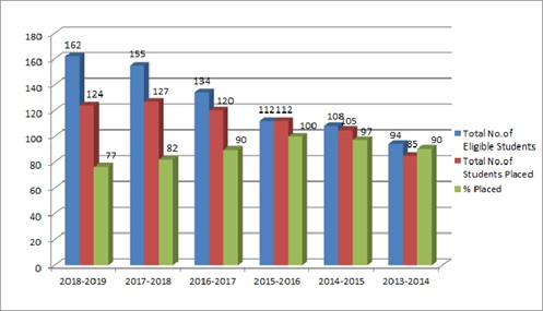 | Academic Year | Total No.of Eligible Students | Total No.of Students Placed | % Placed |