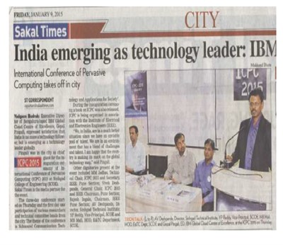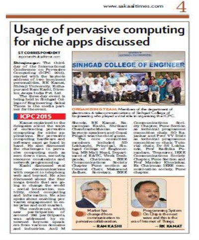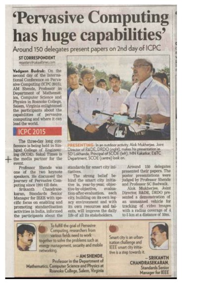 E & TC — Media Release ELECTRONICS & TELECOMMUNICATION Media Releases News about the First day of ICPC-15 Conference inSakal times VLSI Faculty orientationworkshop News about the Second day of ICPC-15 Conference inSakal times News about the Second day of ICPC-15 Conference inSakal times Sakal Times, 21 March 2015, DIgital Edition